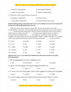 calories, just as we measure your (28) ________ in inches or your weight in pounds. A calorie is a