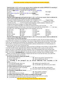Read the followingpassage and mark the letter A, B, C or D on your answer sheet to indicate the