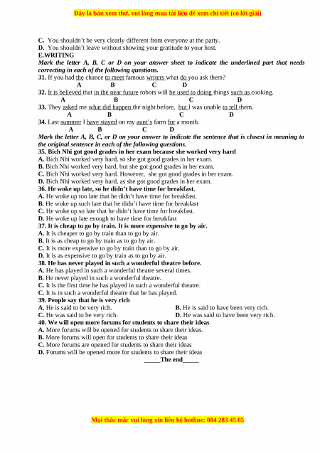 D. You shouldn’t leave without showing your gratitude to your host. E.WRITING