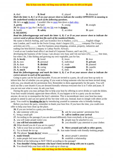 20. He drove so fast that I really felt my life was in d anger . A. health B. safety C. accident D. sport D. READING