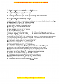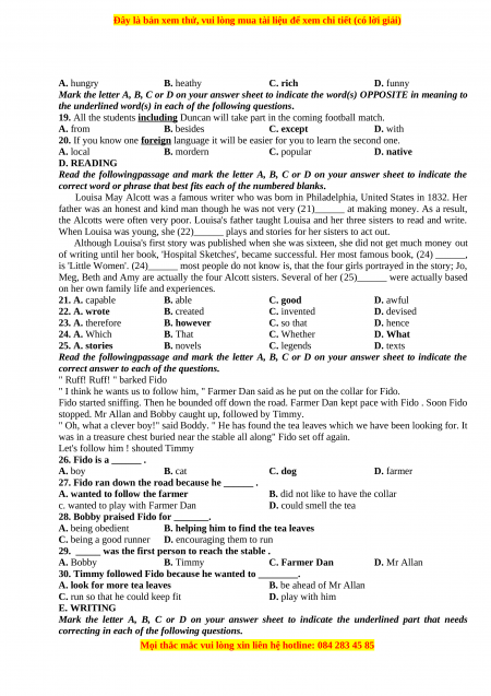 16. Mr Grill: “Could you tell me the way to the station please?” A woman: “______.” A. Yes, of course B. No, not really C. Yes, I could D. It’s so far. C. SYNONYM AND ANTONYM: