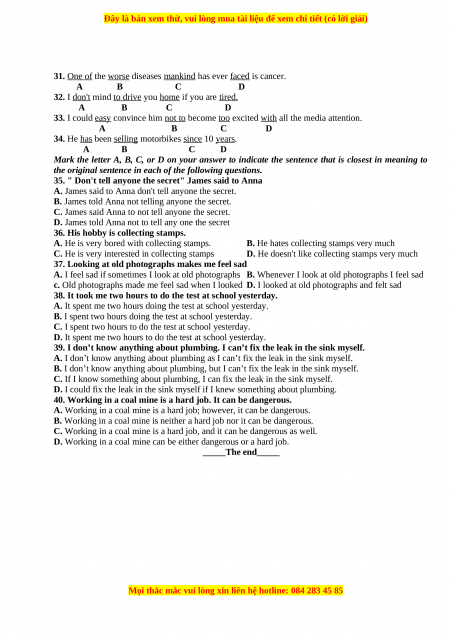 - Mark the letter A, B, C or D on your answer sheet to indicate the most suitable response to complete each of the following exchanges.