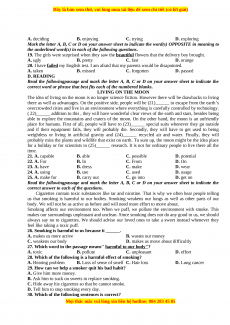 Read the followingpassage and mark the letter A, B, C or D on your answer sheet to indicate the