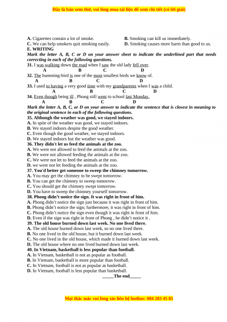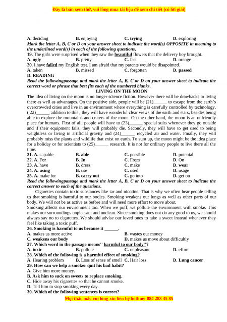 Đây là bản xem thử, vui lòng mua tài liệu để xem chi tiết (có lời giải)