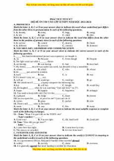 (BỘ ĐỀ ÔN THI VÀO LỚP 10 THPT NĂM HỌC 2022-2023) A. PHONETICS