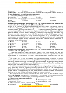 26. Columbus was famous and popular for ______. A. his three voyages