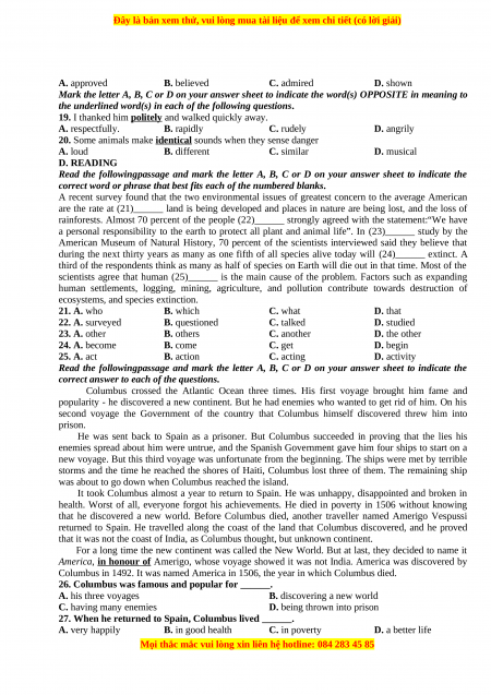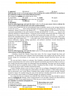 ecosystems, and species extinction. 21. A. who B. which C. what D. that 22. A. surveyed B. questioned C. talked D. studied 23. A. other B. others C. another D. the other 24. A. become B. come C. get D. begin 25. A. act B. action C. acting D. activity