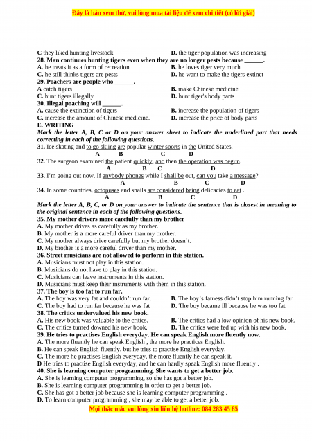 Đây là bản xem thử, vui lòng mua tài liệu để xem chi tiết (có lời giải)