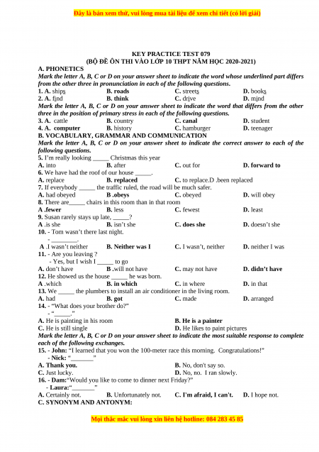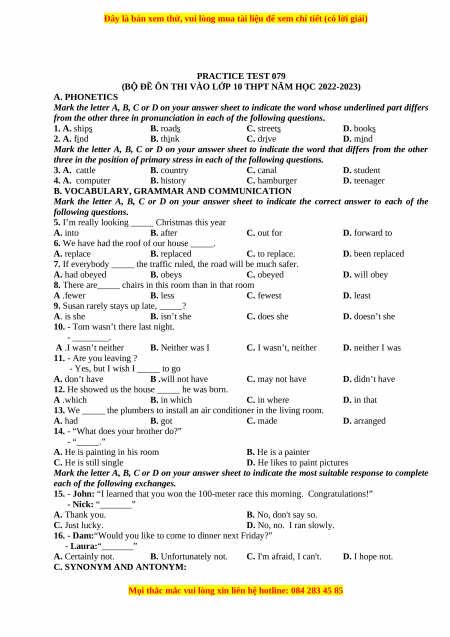 (BỘ ĐỀ ÔN THI VÀO LỚP 10 THPT NĂM HỌC 2022-2023) A. PHONETICS