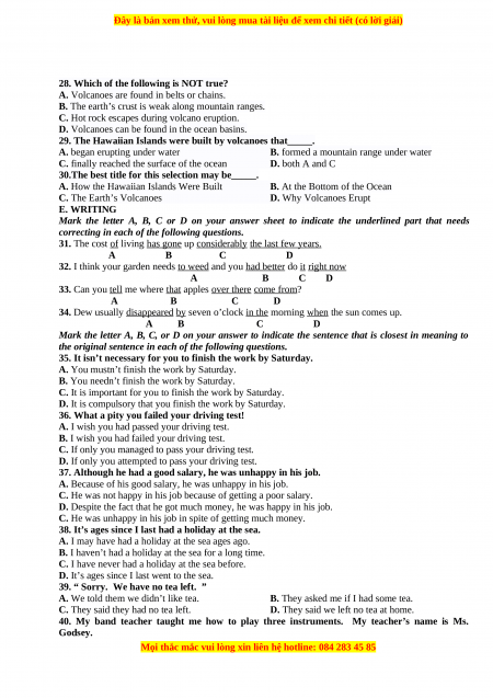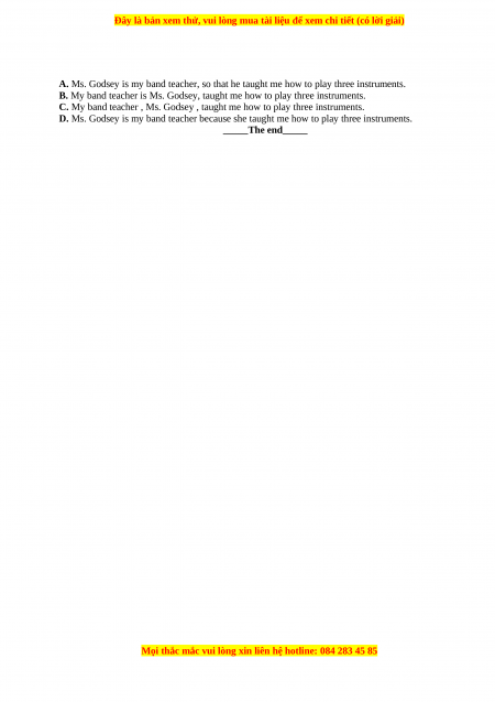 Mark the letter A, B, C or D on your answer sheet to indicate the most suitable response to complete
