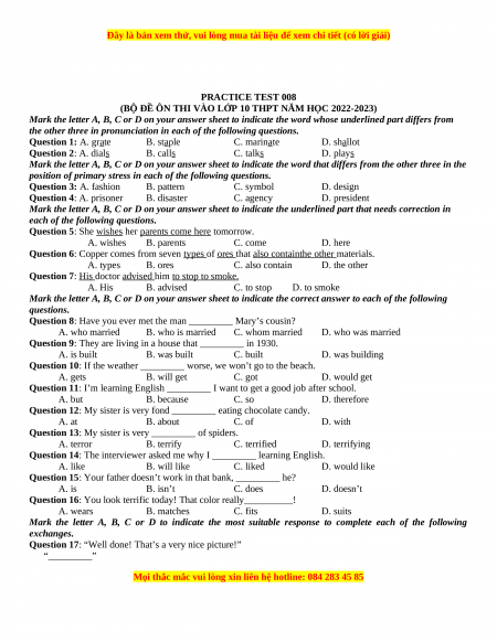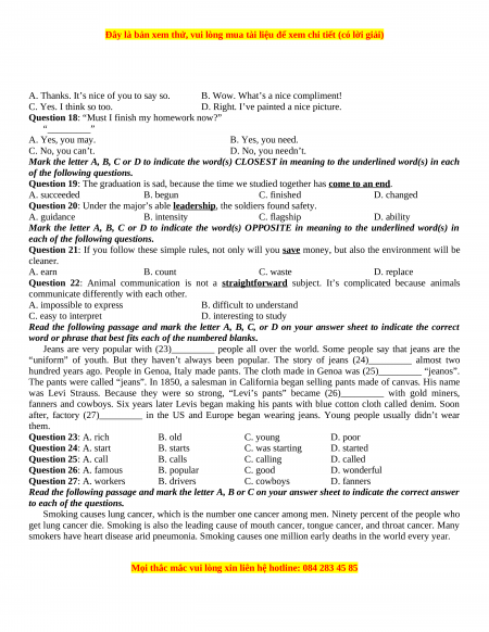 Đây là bản xem thử, vui lòng mua tài liệu để xem chi tiết (có lời giải)