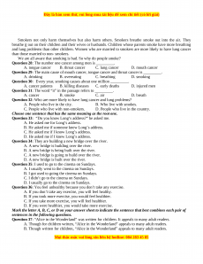 Question 31: The word “it” in the passage refers to _________. A. cancer B. smoke C. air D. breath