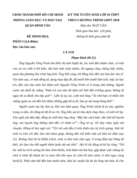 THEO CHƯƠNG TRÌNH GDPT 2018 QUẬN BÌNH TÂN Môn thi: NGỮ VĂN