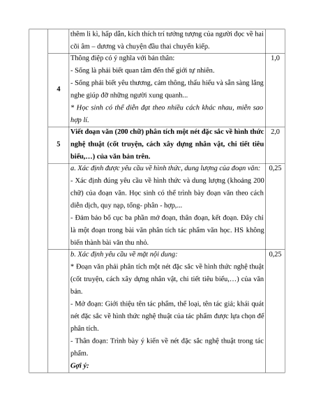 Câu 5. (2,0 điểm) Viết đoạn văn (200 chữ) phân tích một nét đặc sắc về hình thức nghệ