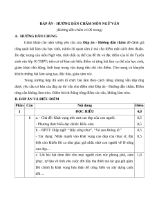 ĐÁP ÁN - HƯỚNG DẪN CHẤM MÔN NGỮ VĂN