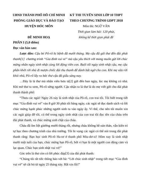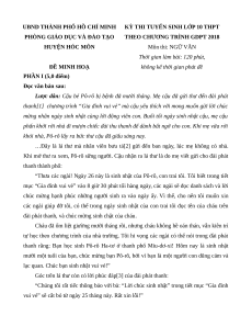 THEO CHƯƠNG TRÌNH GDPT 2018 HUYỆN HÓC MÔN Môn thi: NGỮ VĂN