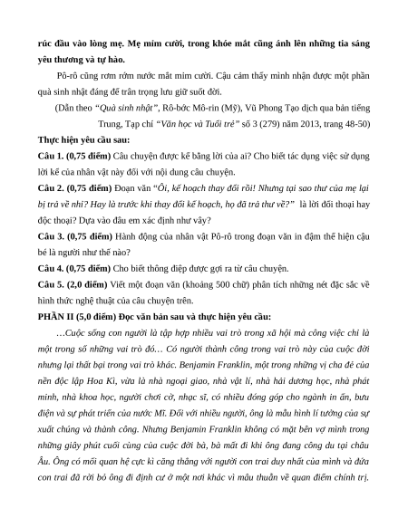 PHẦN II (5,0 điểm) Đọc văn bản sau và thực hiện yêu cầu: