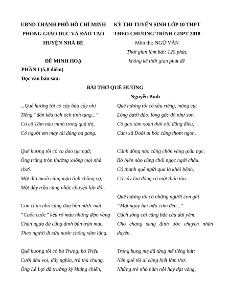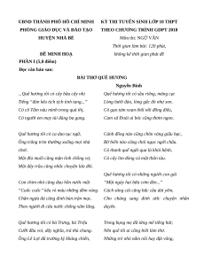 THEO CHƯƠNG TRÌNH GDPT 2018 HUYỆN NHÀ BÈ Môn thi: NGỮ VĂN