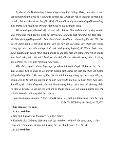 chắn sẽ trở thành tiền đề cho thành công lâu dài như thế nào? (0,5 điểm) Câu 2. (4,0 điểm)