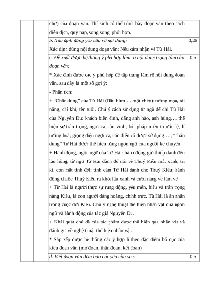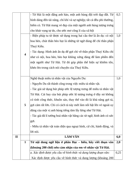 - Các chi tiết miêu tả nhân vật Từ Hải: 0,5