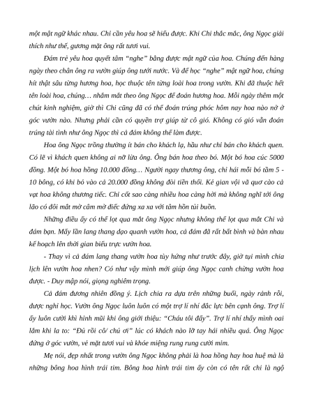 ngày theo chân ông ra vườn giúp ông tưới nước. Và để học “nghe” mật ngữ hoa, chúng