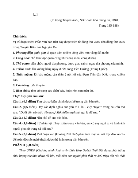 không kể thời gian phát đề PHẦN I (5,0 điểm) Đọc văn bản sau: [...]