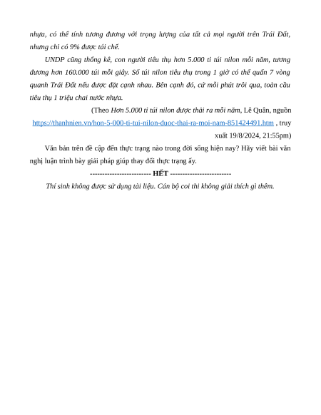 https://thanhnien.vn/hon-5-000-ti-tui-nilon-duoc-thai-ra-moi-nam-851424491.htm , truy xuất 19/8/2024, 21:55pm)