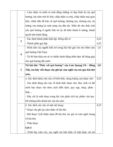 Câu 5. (2,0 điểm) Từ bài thơ “Thức với quê hương” của Lưu Quang Vũ – Bằng Việt,
