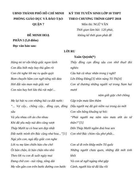 THEO CHƯƠNG TRÌNH GDPT 2018 QUẬN 7 Môn thi: NGỮ VĂN