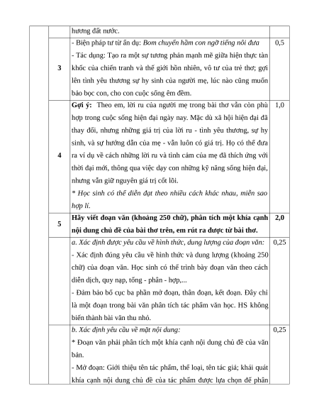Câu 4. (1,0 điểm) Theo em, lời ru của người mẹ trong bài thơ có còn phù hợp trong