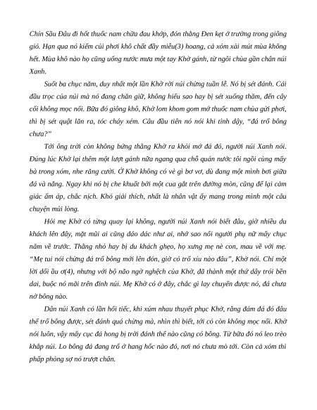 hết. Mùa khô nào họ cũng uống nước mưa một tay Khờ gánh, từ ngôi chùa gần chân núi Xanh.