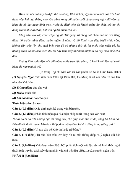 không kể thời gian phát đề PHẦN I (5,0 điểm) Đọc văn bản sau: ĐÁ TRỔ BÔNG Nguyễn Ngọc Tư(1)
