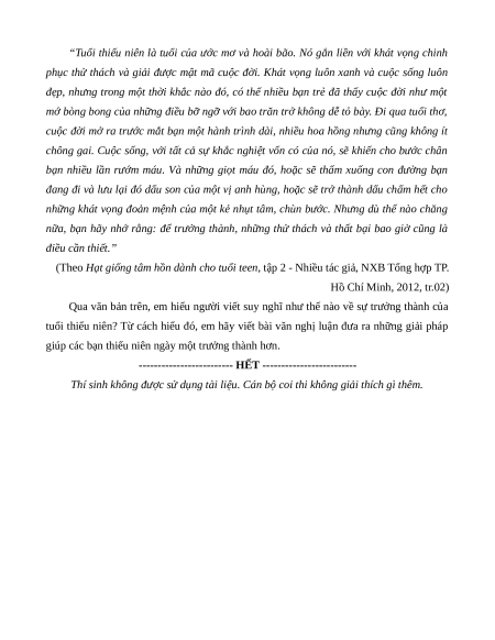 Thí sinh không được sử dụng tài liệu. Cán bộ coi thi không giải thích gì thêm.