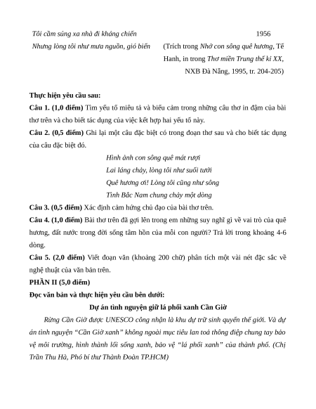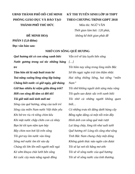 không kể thời gian phát đề PHẦN I (5,0 điểm) Đọc văn bản sau: