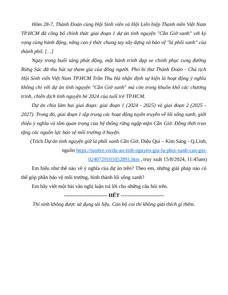 Đề minh họa thi vào lớp 10 Ngữ văn 2025 - Phòng GD Thủ Đức (đề 2)