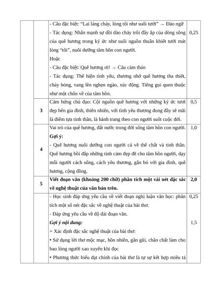 Câu 4. (1,0 điểm) Bài thơ trên đã gợi lên trong em những suy nghĩ gì về vai trò của quê