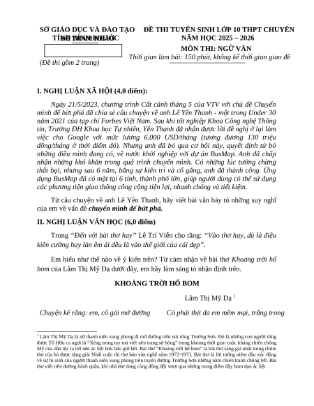 NĂM HỌC 2025 – 2026 MÔN THI: NGỮ VĂN