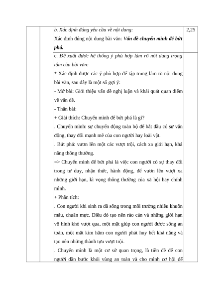 b. Xác định đúng yêu cầu về nội dung: 2,25