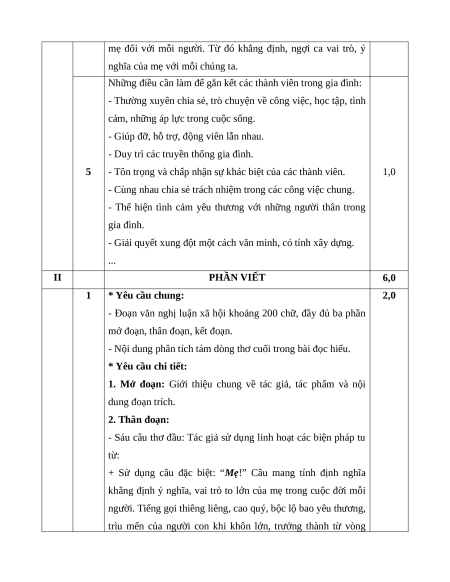 Câu 5 (1,0 điểm). Mẹ và những người thân trong gia đình là những người không thể