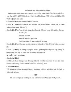 Câu 5. (1,0 điểm) Từ những suy ngẫm của tác giả trong câu “Tựa vào cây, chúng tôi