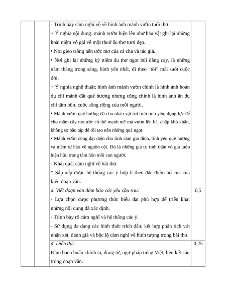 Câu 3. (1,0 điểm) Phân tích tác dụng của biện pháp điệp ngữ trong những dòng thơ sau: Mảnh vườn San đều nỗi nhớ