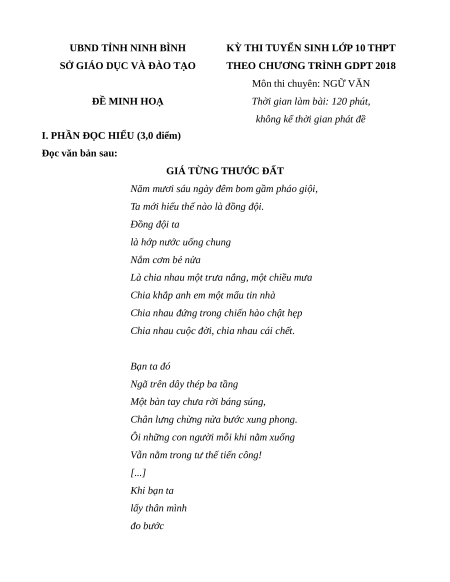 Đề minh họa thi vào lớp 10 Ngữ văn 2025 - Sở GD Ninh Bình (Chuyên)