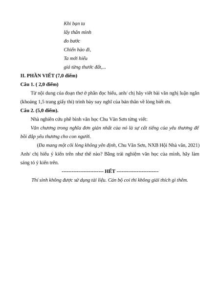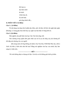 (khoảng 1,5 trang giấy thi) trình bày suy nghĩ của bản thân về lòng biết ơn. Câu 2. (5,0 điểm).