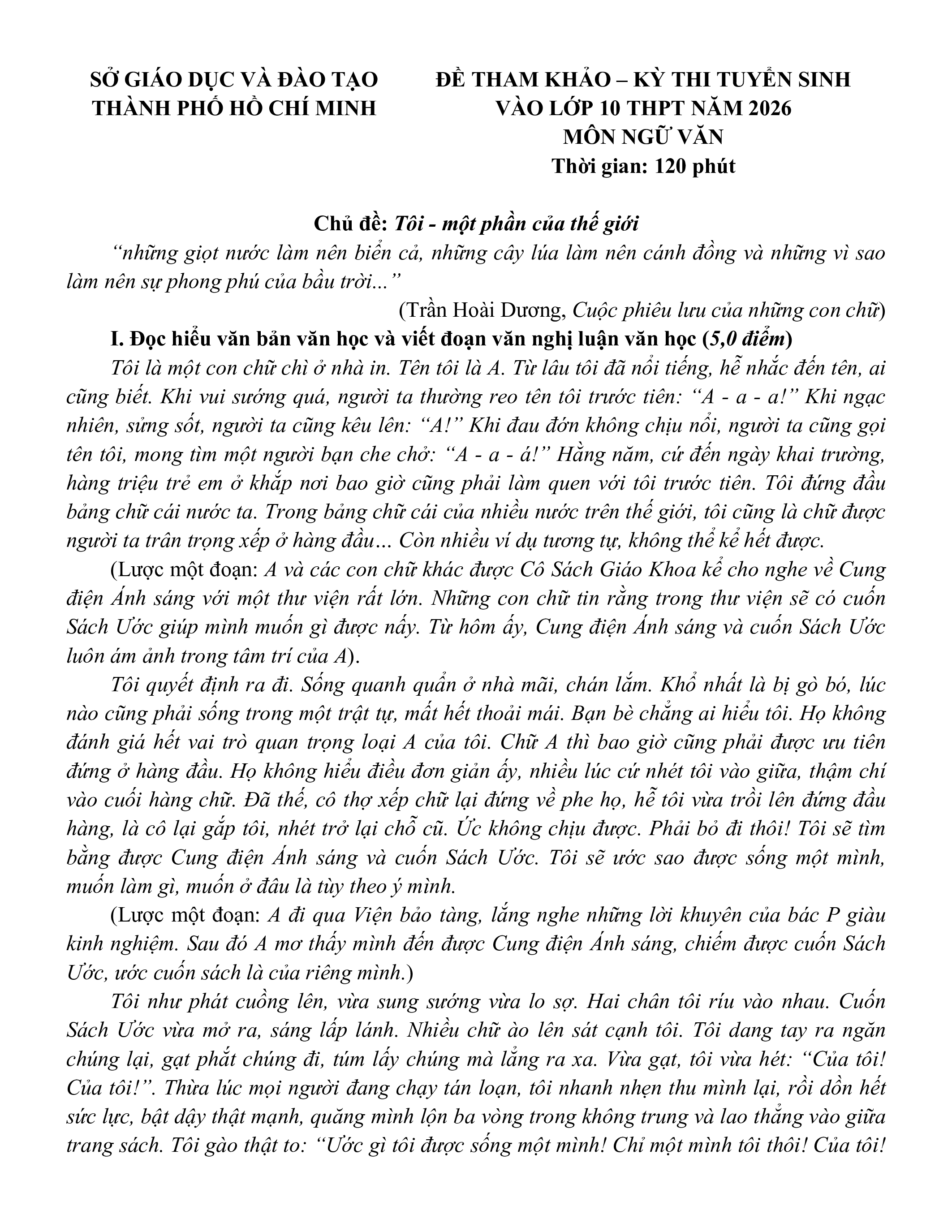 VÀO LỚP 10 THPT NĂM 2026 MÔN NGỮ VĂN Thời gian: 120 phút