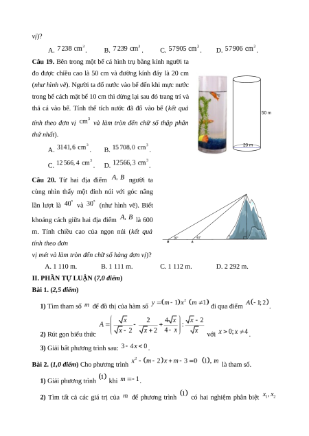 m. Tính chiều cao của ngọn núi (kết quả 30° 40° tính theo đơn B A