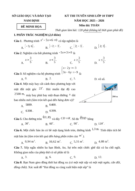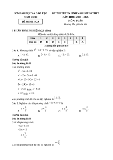 Đề minh họa Toán thi vào lớp 10 Nam Định 2025