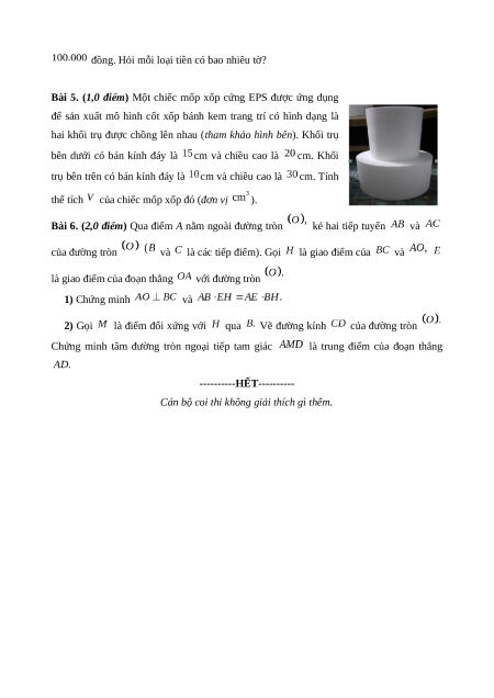 Bài 5. (1,0 điểm) Một chiếc mốp xốp cứng EPS được ứng dụng