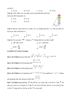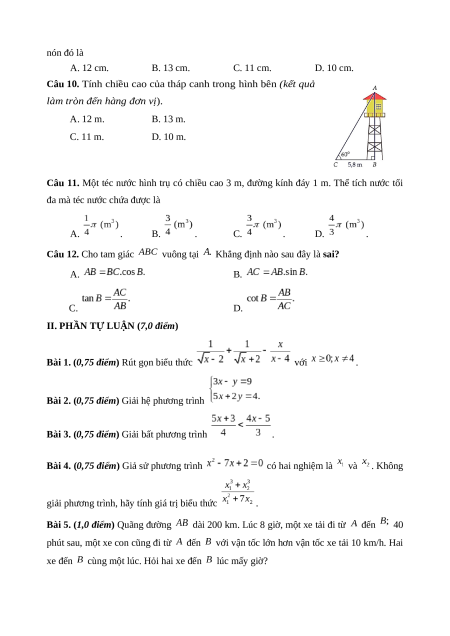đa mà téc nước chứa được là A. . B. . C. . D. . Câu 12. Cho tam giác vuông tại