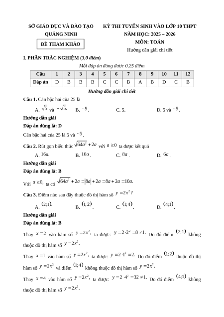 Đề minh họa Toán thi vào lớp 10 Quảng Ninh 2025