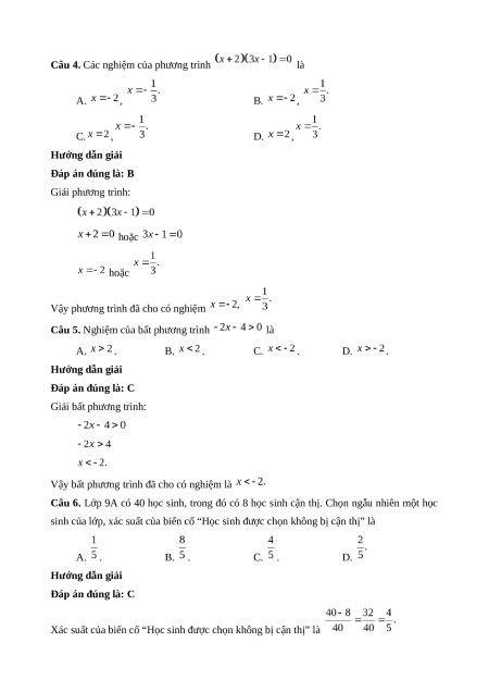 Câu 4. Các nghiệm của phương trình là A. , B. , C. , D. ,
